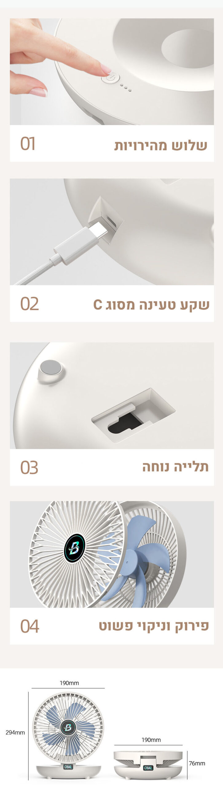 ✚ תכירי את המאוורר המדובר ברשת! קטן אך ממזר גדול בעל 3 מהירויות, נטען, מאפשר לך לקפלו ולשאת איתך לכל מקום